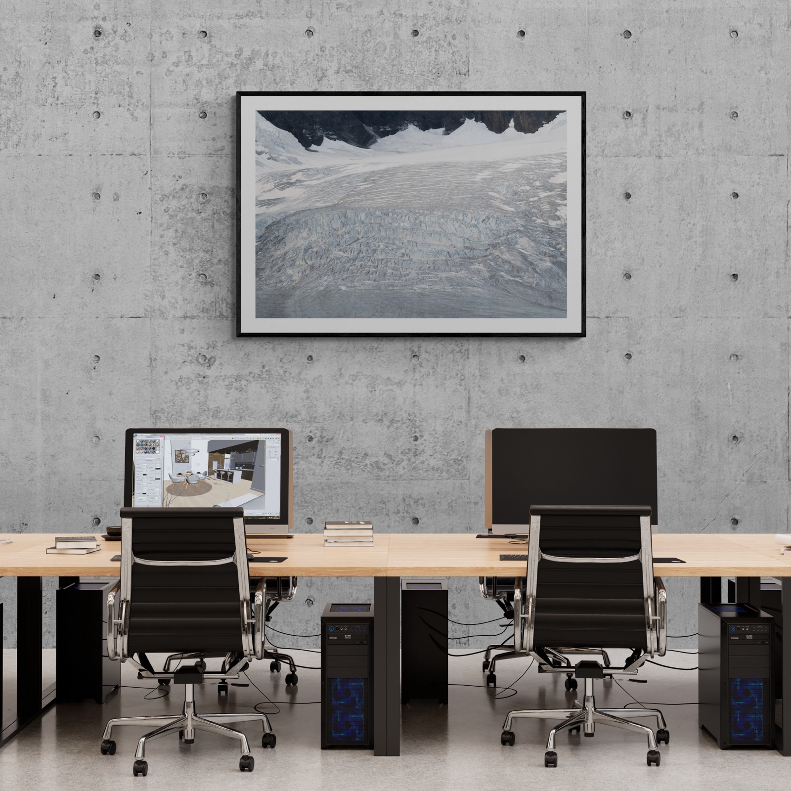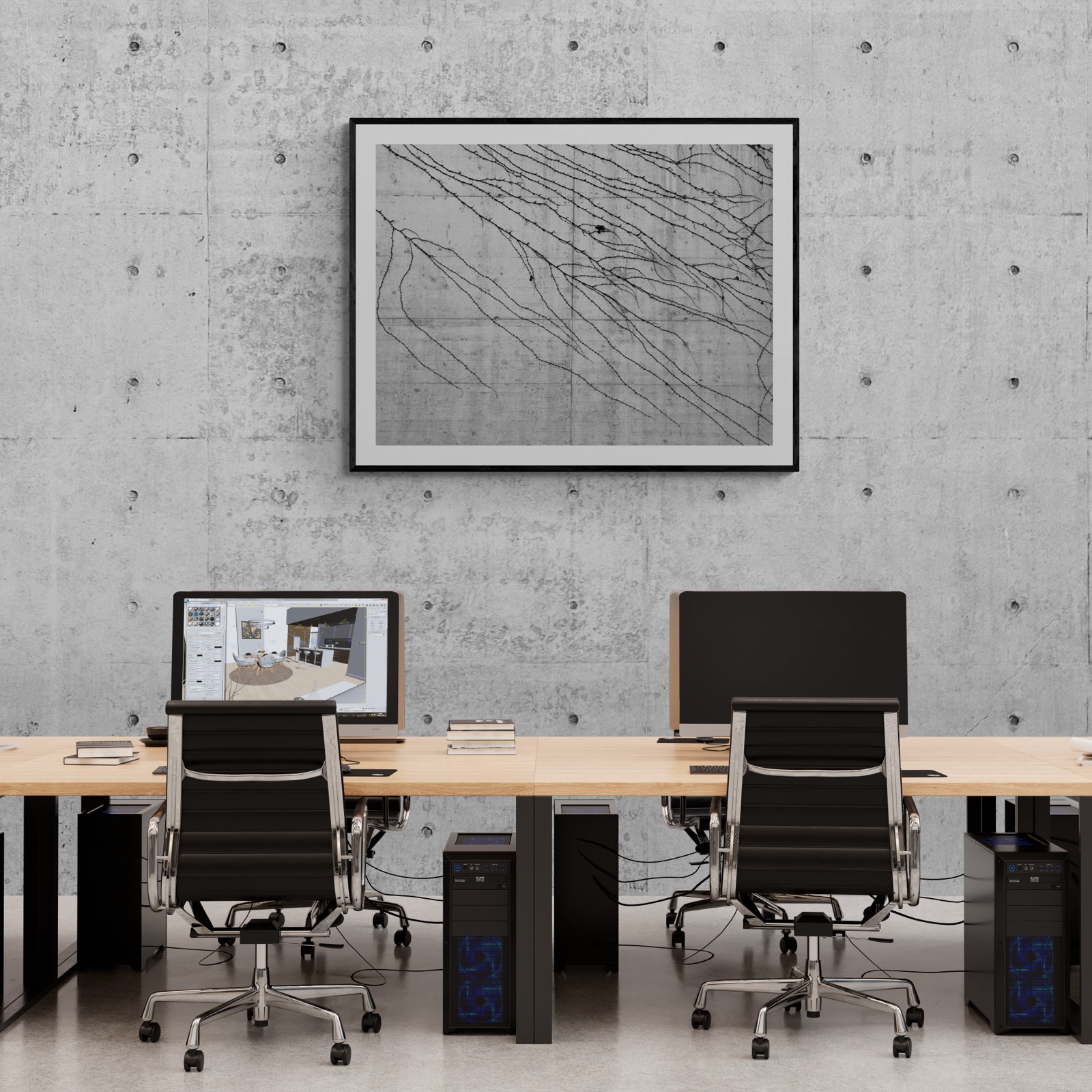 In commercial settings, art introduces a counterpoint to routine. Against raw concrete and shared desks, a single frame can shift the atmosphere of an entire floor.